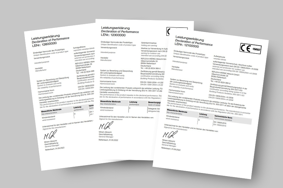 Leistungs-, Konformitäts- und Herstellererklärungen, Zertifikate