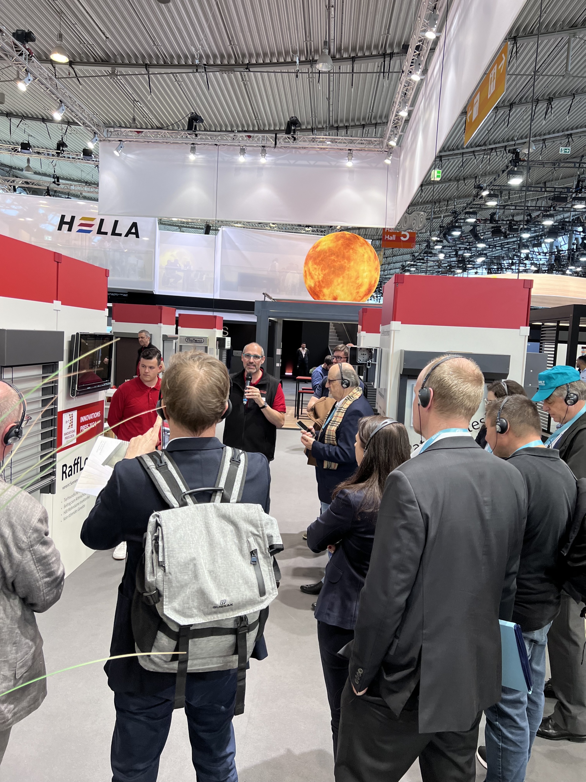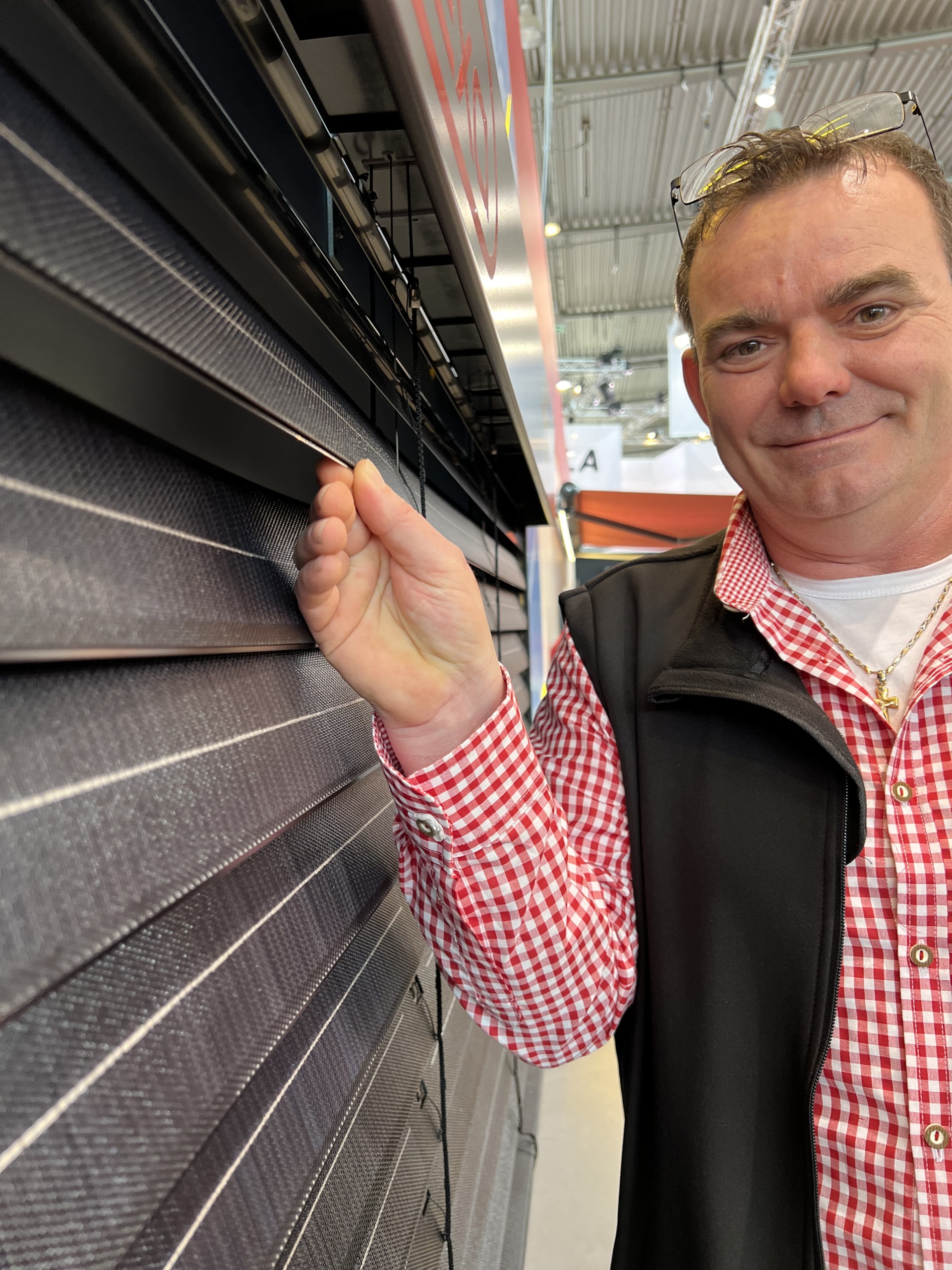 Das Highlight auf unserem Messestand war mit Sicherheit der RaffSun. Schon 2021 konnten wir den Award in Gold gewinnen und jetzt endlich auf dem Stand live ausstellen. Viele Interessierte kamen vorbei, um sich ein Bild von der Innovation im Bereich Sonnenschutz zu machen, der mit der Erzeugung grüner Energie an Fensterflächen punktet.